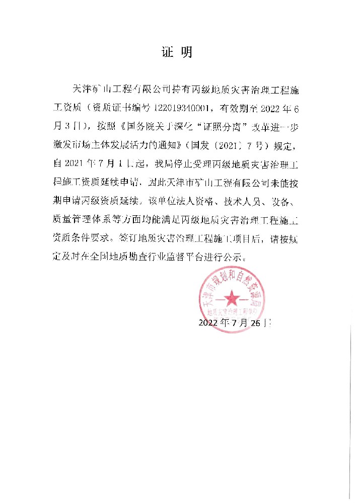 地質災害治理工程施工資質證書